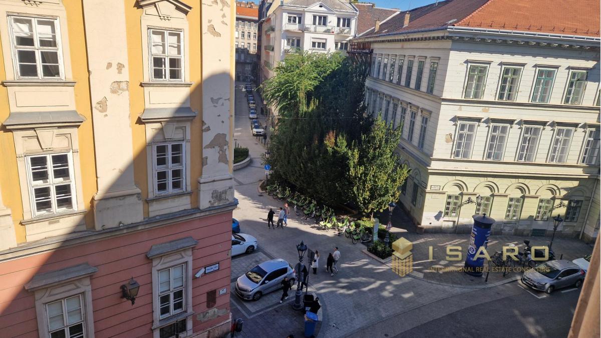 In the heart of the city, on Varoshaz utca, a quiet street in the fifth district, just meters from the pedestrian zone of Vaci utca, an 82 sq m apartment is for sale.
